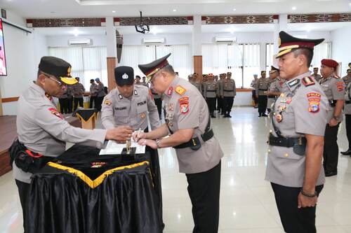 Sementara itu, jabatan Kapolres Jayapura diserahterimakan dari AKBP Umar Nasetekay, S.I.K., kepada AKBP Dionisius Vox Dei Paron Helan, S.I.K., M.H., M.Tr.Mi.